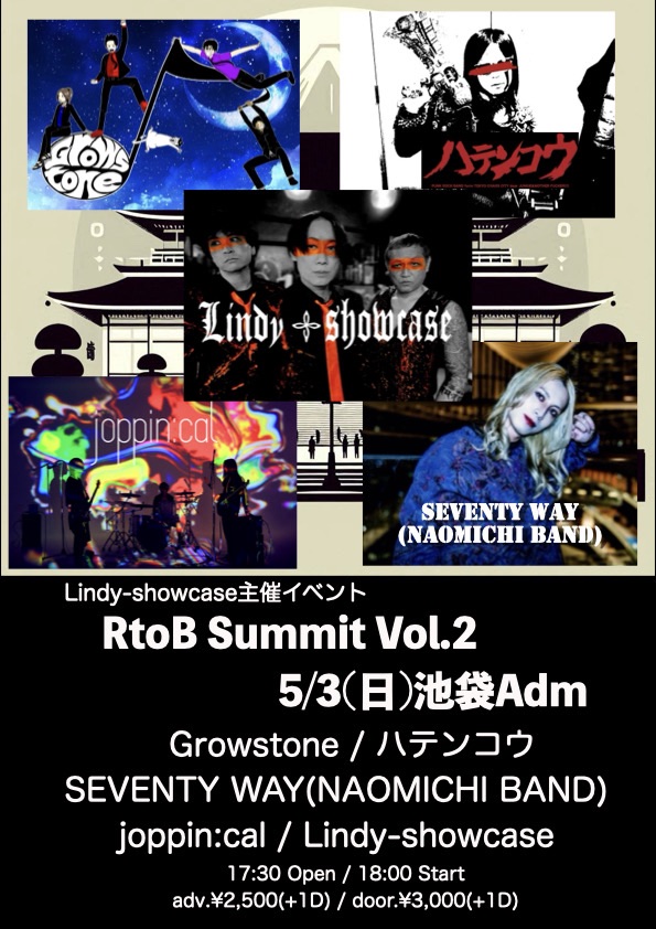 【出演】joppin:cal / Lindy-showcase / Growstone / ハテンコウ / SEVENTY WAY(NAOMICHI BAND)
